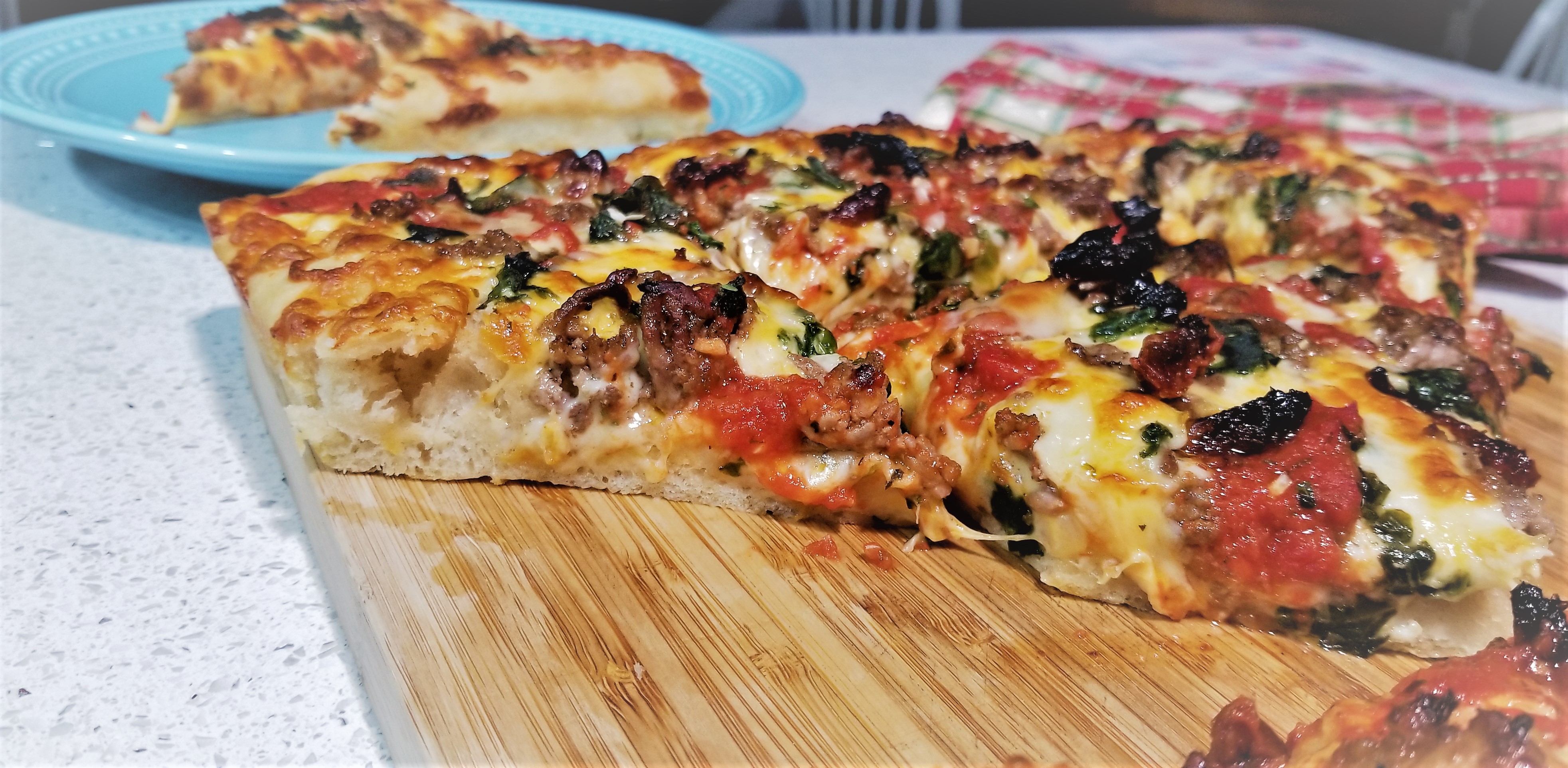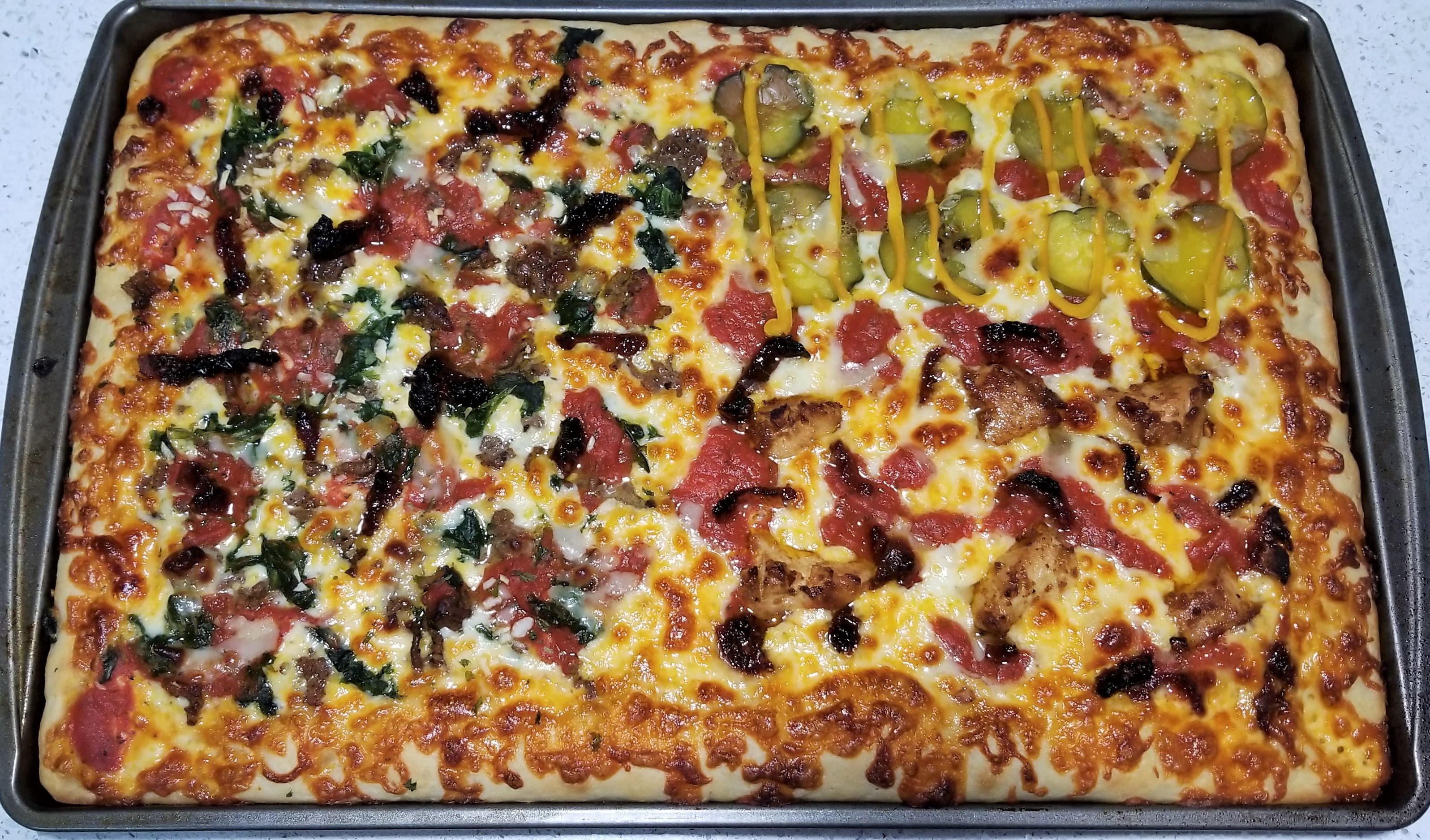 Trying the Bon Appetit Grandma Style dough recipe again with more modifications. Minor modifications.