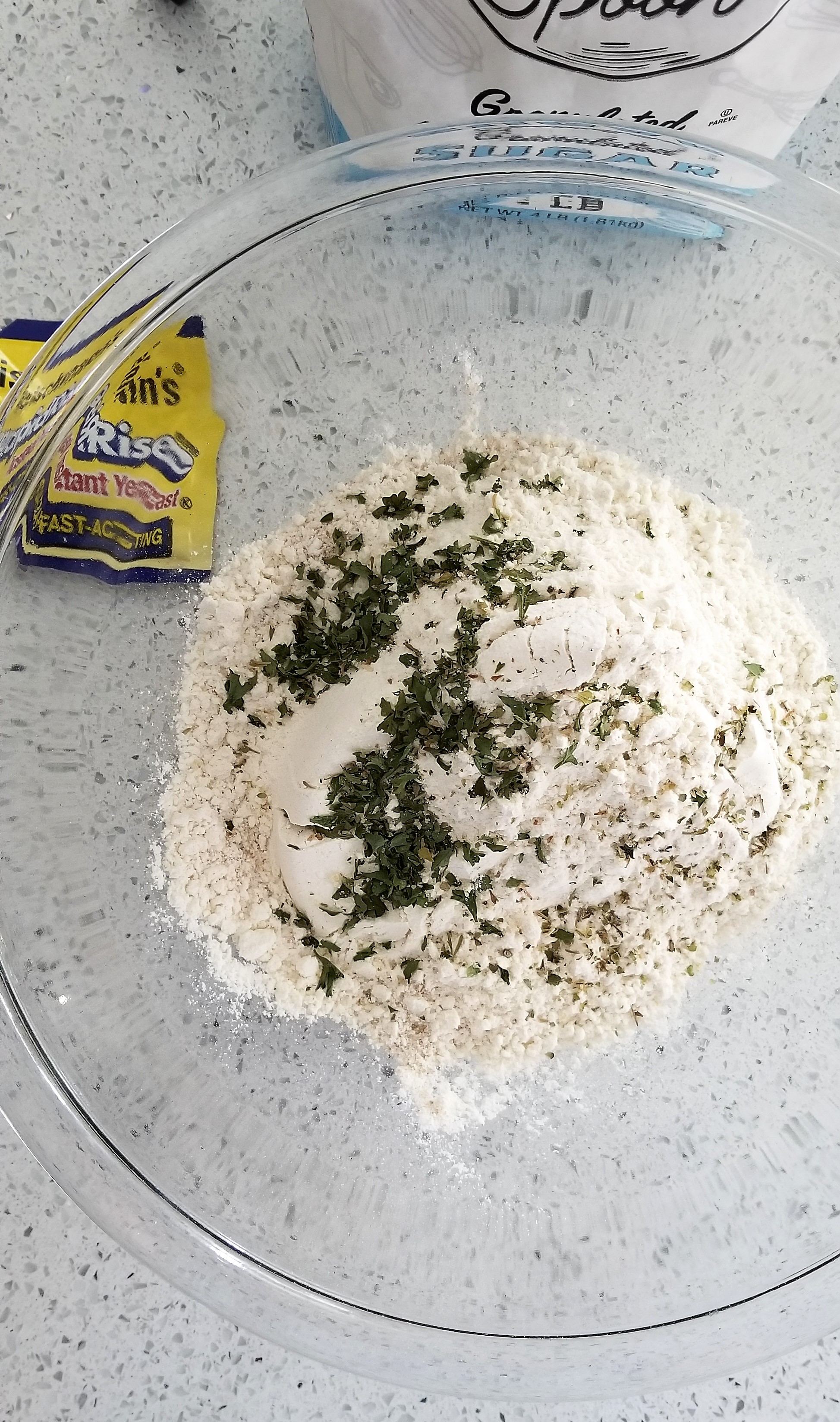 Other requirements: For the 26 unique ingredients I incorporated into these pies, it took about 4.5 hours from the first brew of yeast, to the final cool down and cut. I don’t think it should have taken that long, but be prepared your first time. You either need two 8×8 pie dishes, casserole dishes, or spring form rounds. I successfully utilized the spring form option and recommend it if you have the ability because its is easier to get the pizzas out and cut them. You will also need a rolling pin (wine or 2 liter bottles also work if you wash them beforehand).