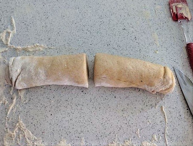 - The last few pizzas we made have been rectangular. Let’s go back to the classic round shape for this one.