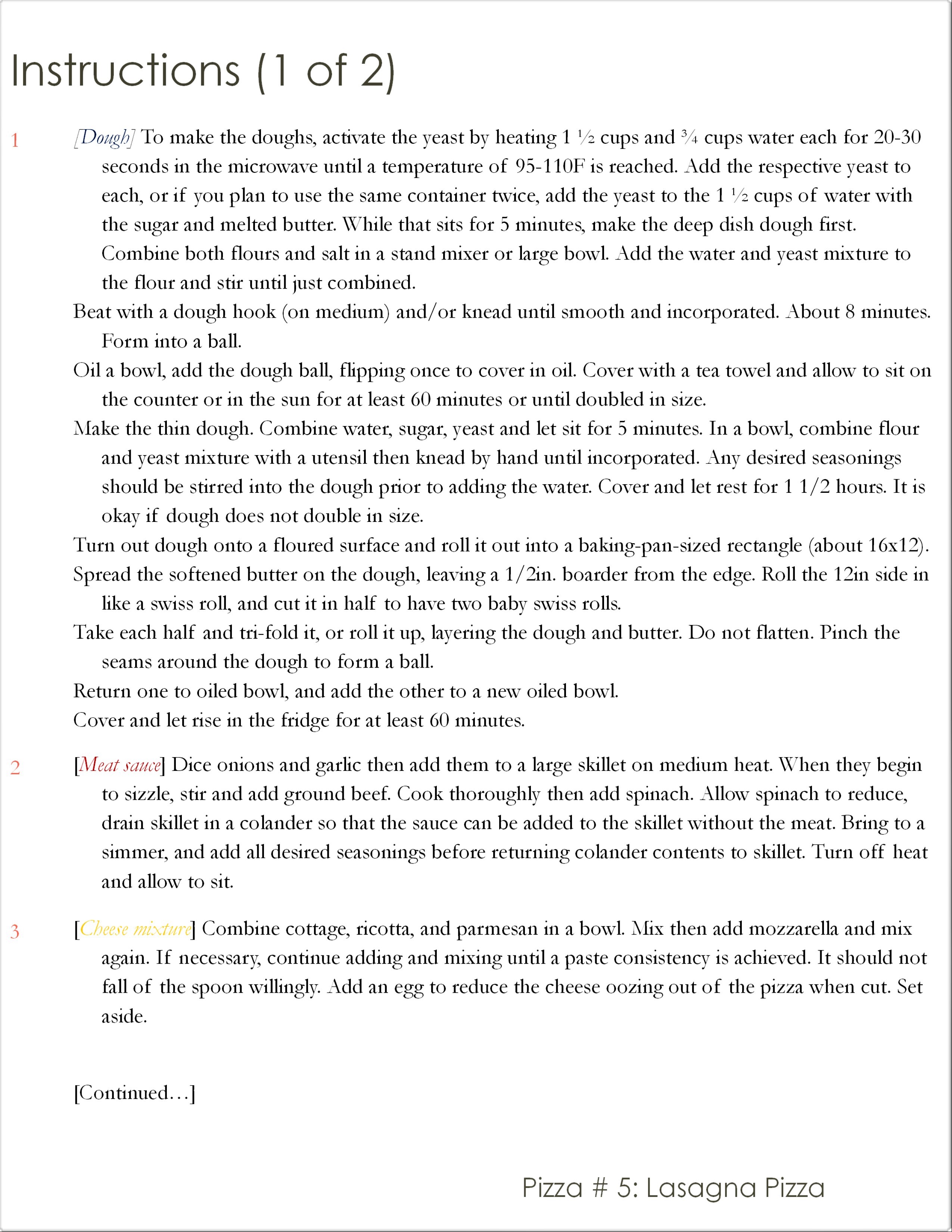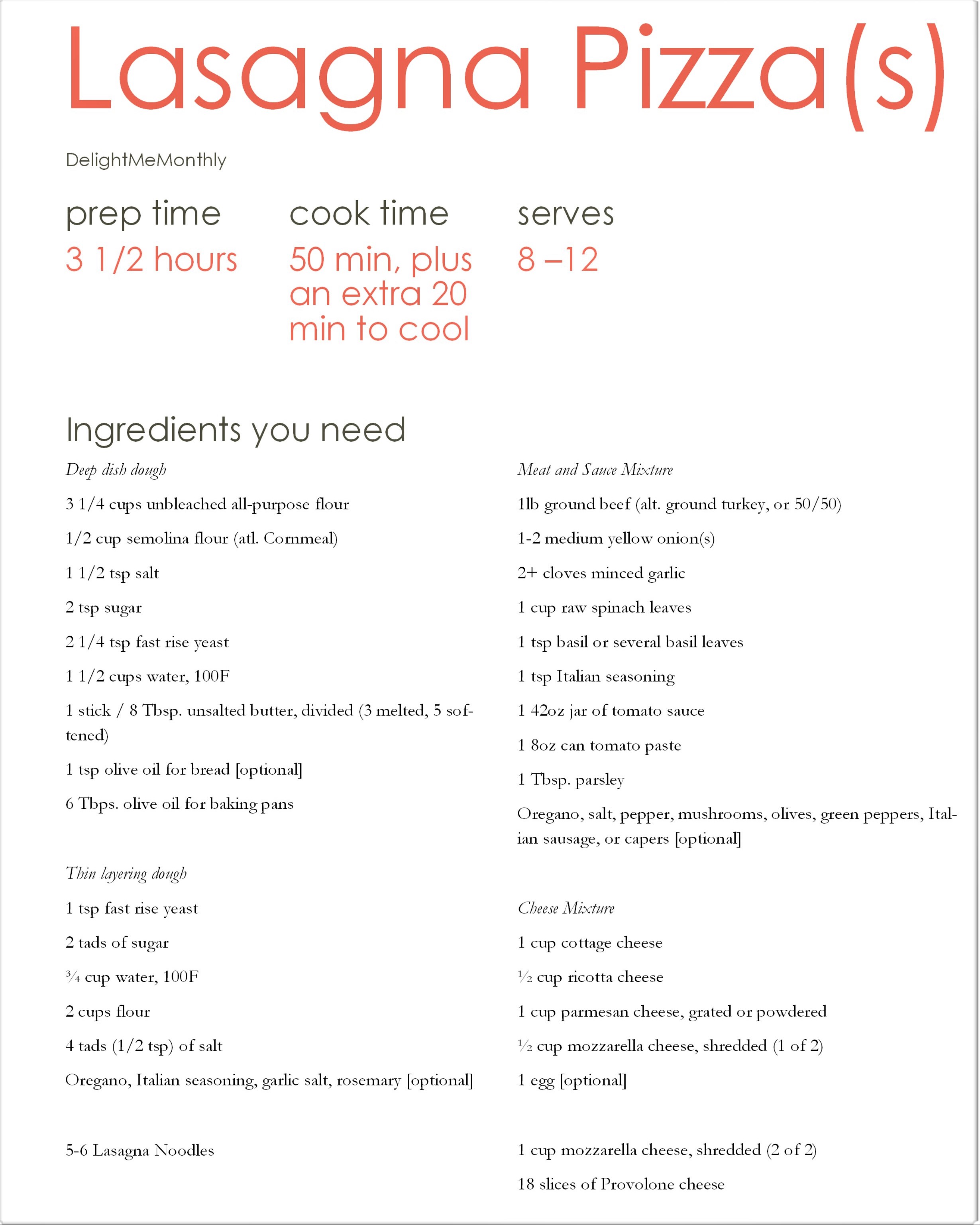Let’s take a traditional lasagna recipe and compare it to a classic cheese pizza. After perusing several food blogs and recipes and learning a great deal what people think a pizza and lasagna require, this is the takeaway: