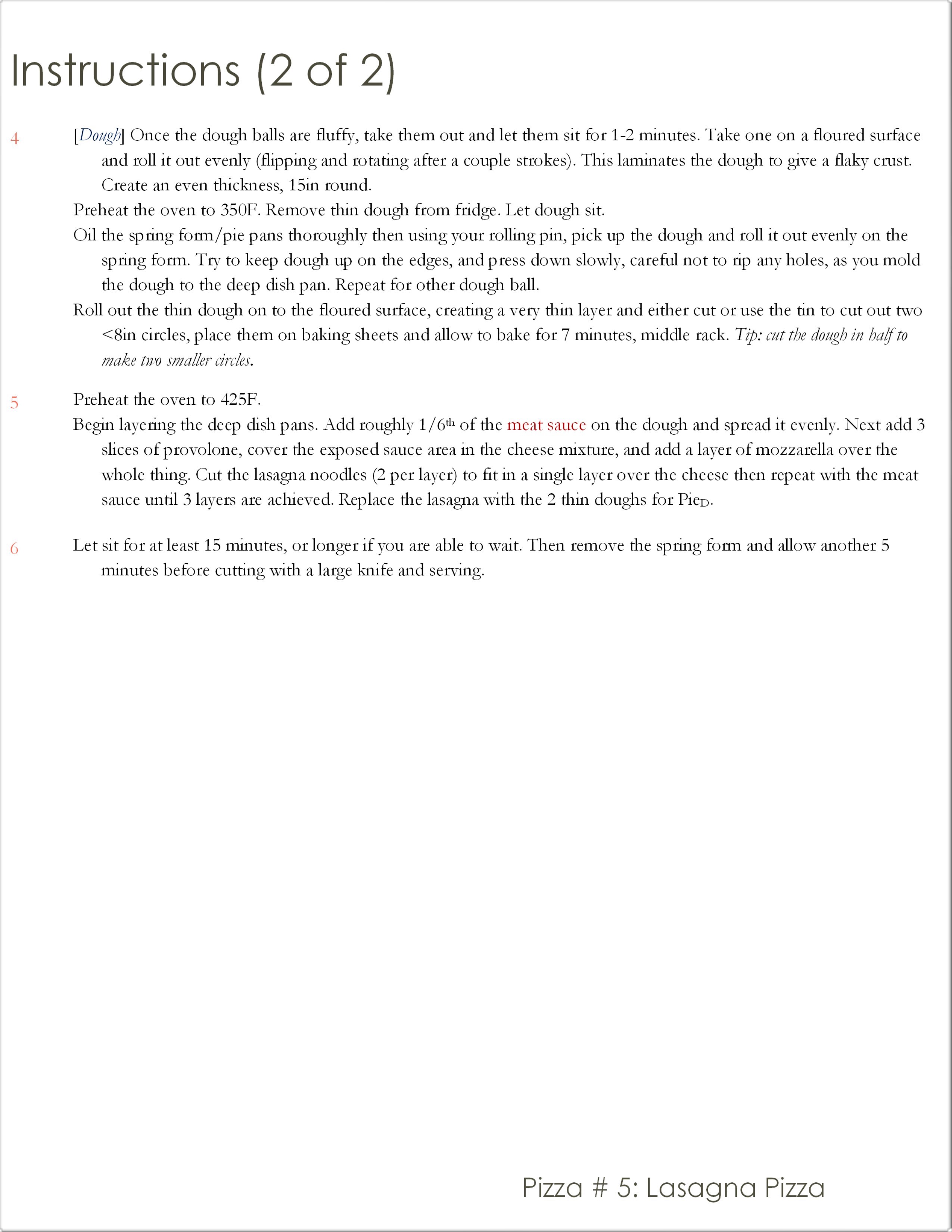 My initial thought is to make 2 pies. I have 2 spring form tins that I will form the dough in, then in PieN I will layer noodles, and in PieD I will layer more dough. The challenge with PieD will be to get the lasagna senses tingling without the noodles.