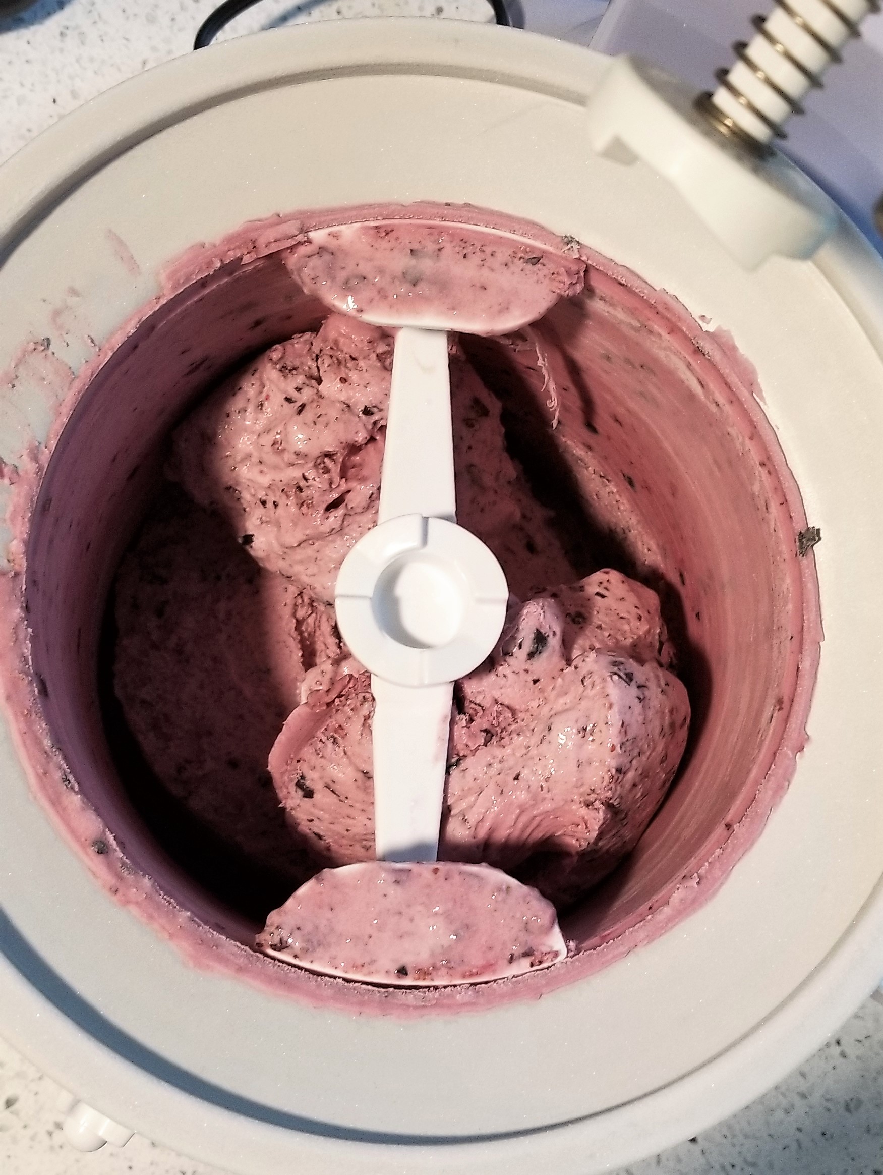 Before I could get this one into the ice cream maker, I could not stop licking the spatula and the measuring cup and scraping the sides of the food processor. The base was so delicious! It might honestly be a better yogurt drink than a frozen treat.