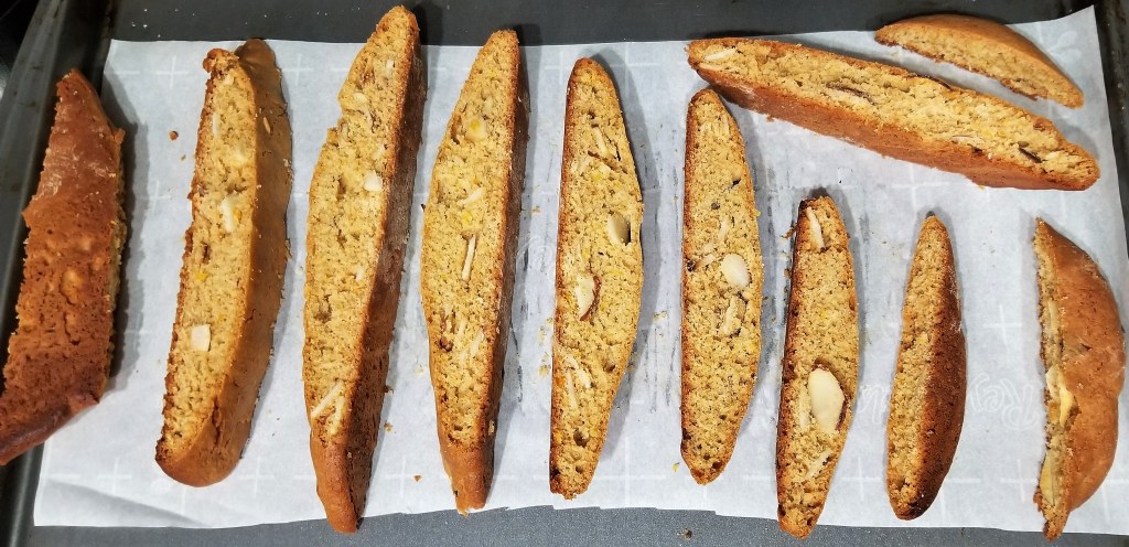 As we are discussing in English, an Italian dish, we ought to cover the definition of biscotti. Break up Bis indicating “twice” and Cotti meaning “cooked” and you already know a lot about this recipe. Biscotti get their crunch from being baked twice, or three times if you over analyze the recipe. We will be baking the biscotti two times to make it nice and crunchy. If you are not familiar with this cookie-cracker like treat offers a soft crunch and a mild unsweetened flavor. It is unique and considered neither a cookie or a cracker, but is its own thing – bicotti.