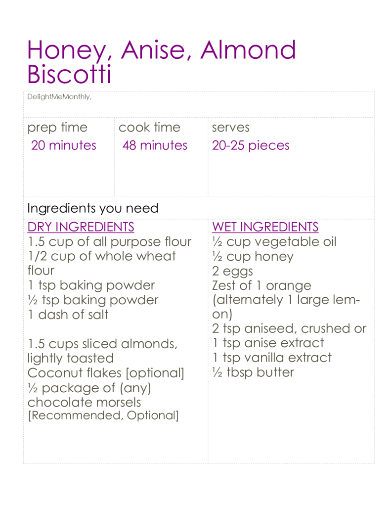 Biscotti has been on the To-Make list for months now. A colleague who has won every baking competition at work for the past 4 years said she has tried it a couple of times and failed miserable. I was prepared for this to end poorly. I checked out the Bon Appetit cookbook and found the traditional recipe for biscotti. Anise and Almond are the original biscotti flavors that really remind me of Italy.