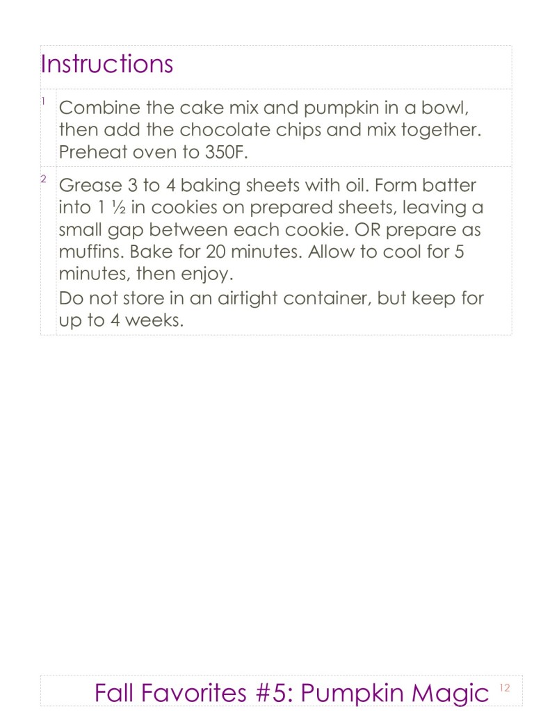 Scoring: 10 of 10. I only made these for the first time last year, but cannot get enough. A friend asked for a recommendation for a quick, easy treat to make for a party, I suggested these Pumpkin cookies. Not only was she ecstatic about them, she agreed the recommendation could not have been more spot on. The only trouble is when I explain how to make them, no one believes it is that easy. I worry they will add extra ingredients like eggs or oil and ruin the batter. Once you have tried these, you will tell everyone you know.
