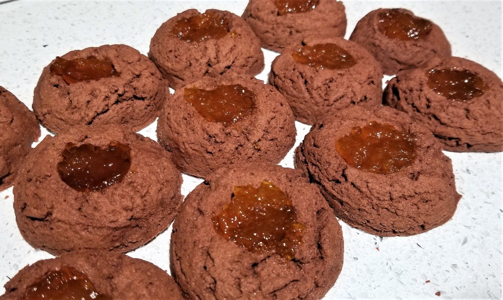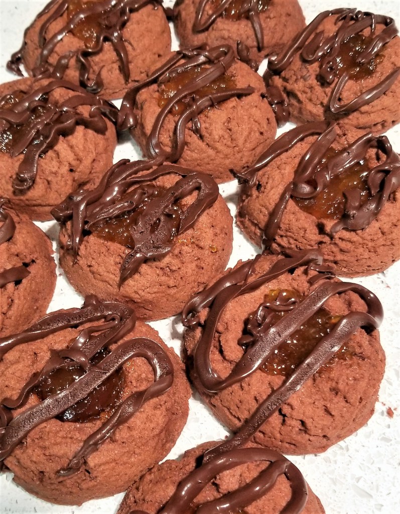 Sometimes there are so many key flavors in a dish that it can be challenging to accurately and concisely name them. These sacher torte cookies go one step further. Yes, I could have made simple chocolate chip cookies, but the world does not need another chocolate chip cookie recipe. What the world needs, in my insignificant opinion, are chocolate cookies with a dimple in the middle to store jelly, with more chocolate on top, oh and did I mention they are peppermint chocolate sacher torte cookies? No, there was no room for that long but delightful word.