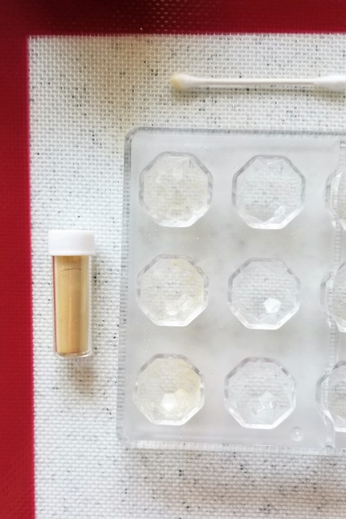 Take-Home Tips: If you are worried about tempering for your first try, remember the environment you are in can impact your success. The bakers on the Great British Bake Off complain about their chocolate melting on hot days and there is a reason I am making chocolates in November and not July. Wait for a dry, cool day to try tempering. Also, polycarbonate molds (plastic) are preferable for your first batch of chocolates. This is my opinion because it is harder to ruin your batch when using them. If you use a silicone mold, you could remove the chocolate from the mold before it fully sets. While with a firm structure, the chocolate will not release until it is ready. For these, the white chocolate would take less time to firm than the dark chocolate and those came out of the mold with the first flip. The remaining chocolates let me know they needed more time to chill by not coming out of the mold, regardless of my banging insistence. Otherwise, it is really a preference of the options and costs. The shine and other attributes are not effected by the type of mold, even though some companies will try to convince you otherwise. Place a baking mat, sheet, or parchment paper under the mold and bowl of chocolate for easier clean up.