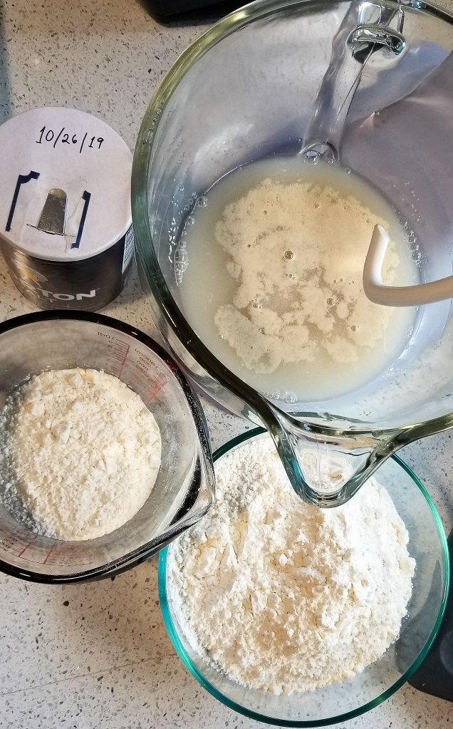 - Ferment yeast: usually involves warm but not hot water, and sugar to feed the yeast.