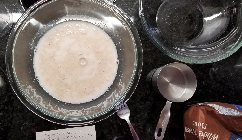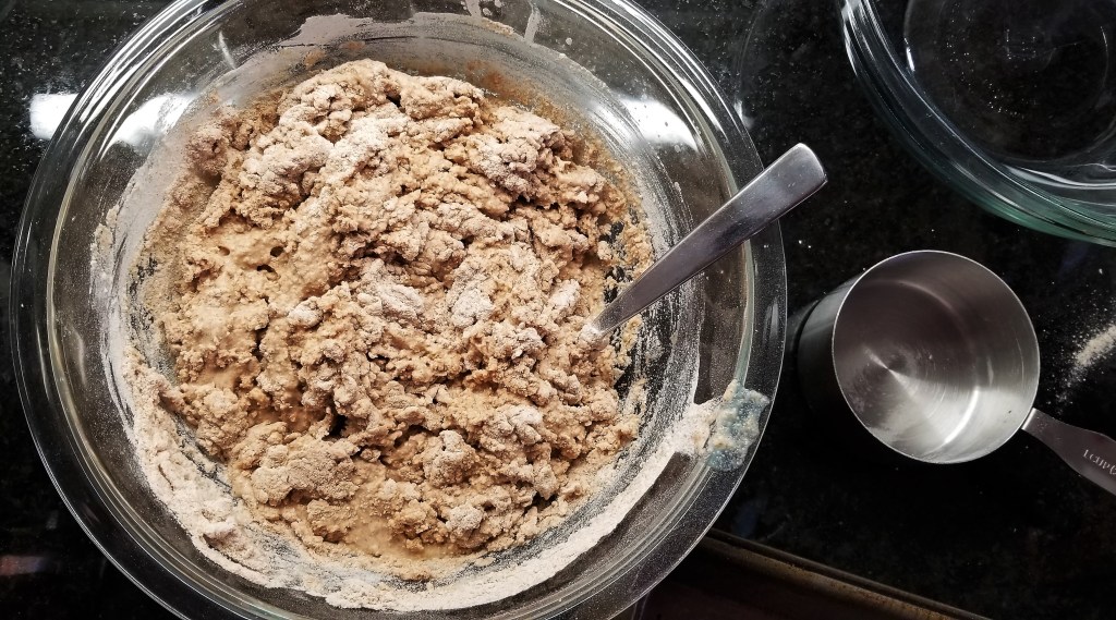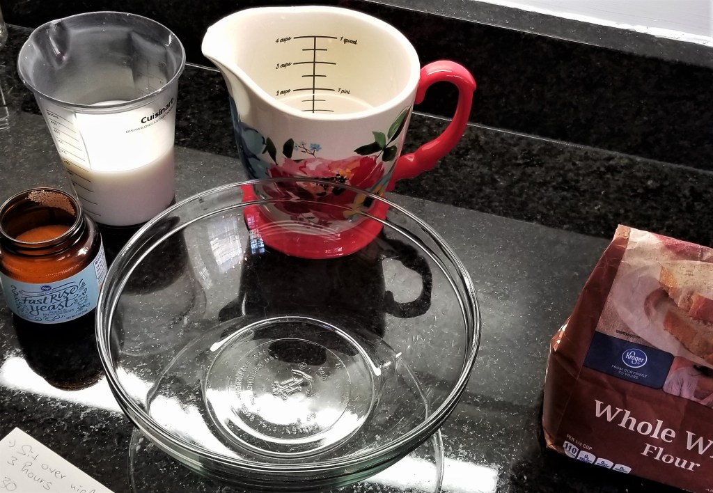 The original recipe doubled the one included here, but I have written out the ingredients for one loaf of the German or American portions. Prior to starting we did investigate the differences and comparisons between natural/fresh/wet yeast common in Europe to the dry yeast we are accustomed to state side. We took into account these differences.