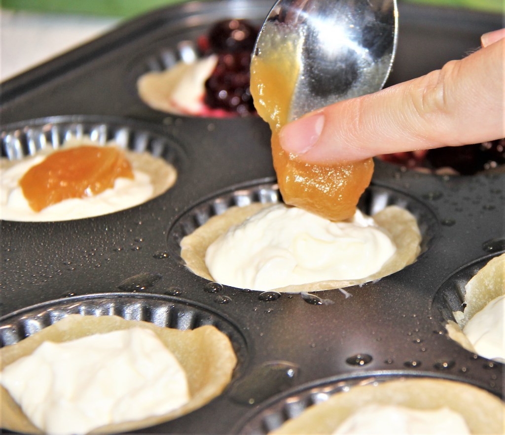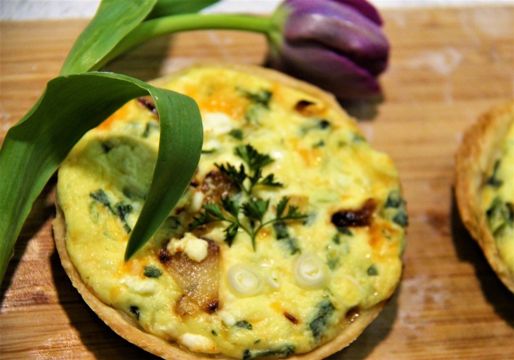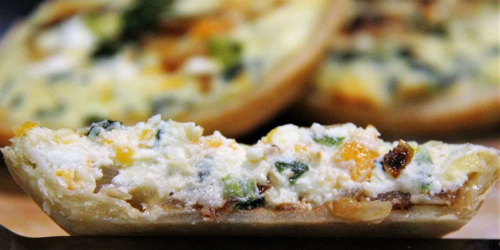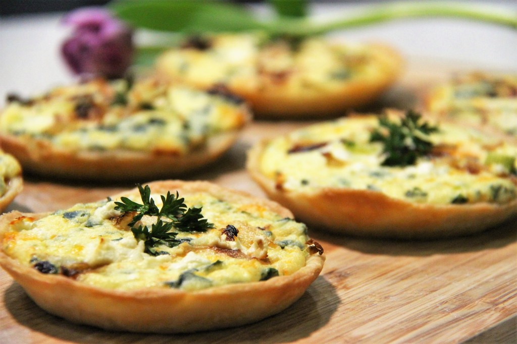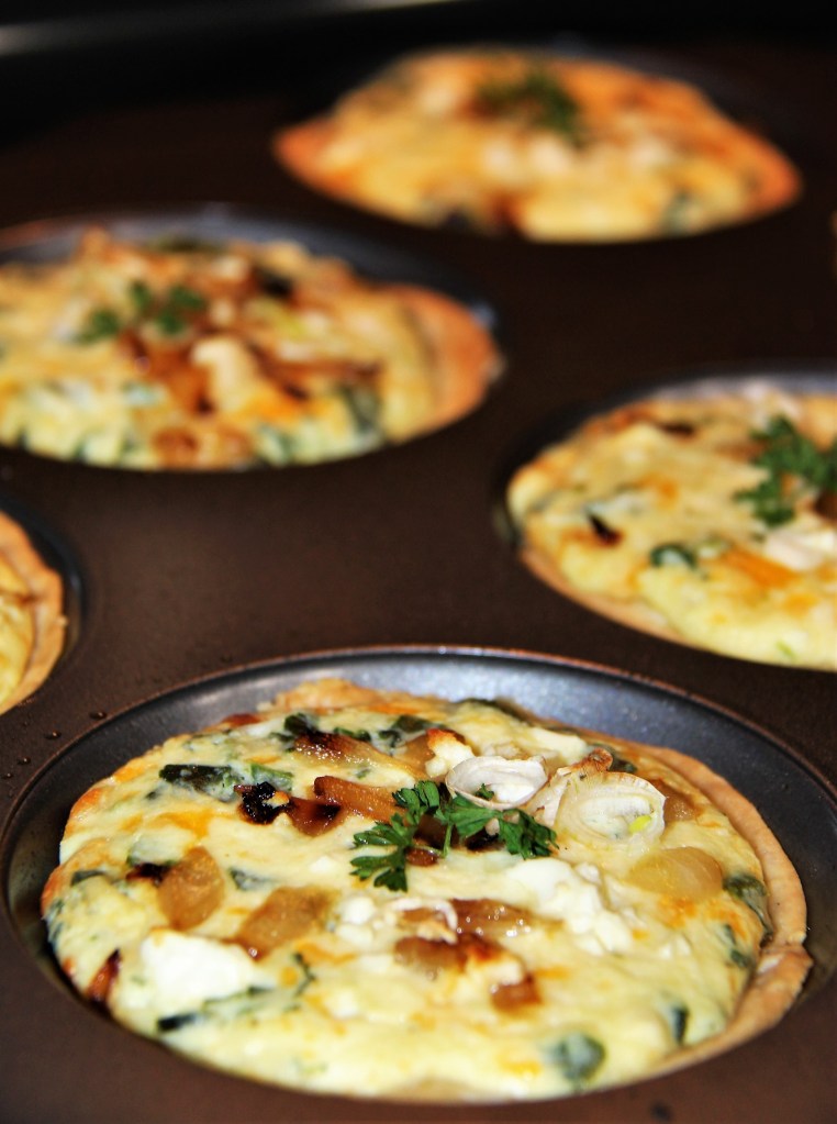 For the fillings, use your favorite cheeses for the Onion Pie and feel free to add mushrooms and chopped bacon if desired. For the Cheesecake Tartelettes, frozen or fresh berries will work but drain the excess juice and do not bake them. Prepare a graham cracker crust for any leftover cheesecake filling and bake and refrigerate those mini cheesecakes.