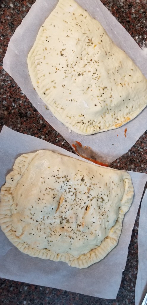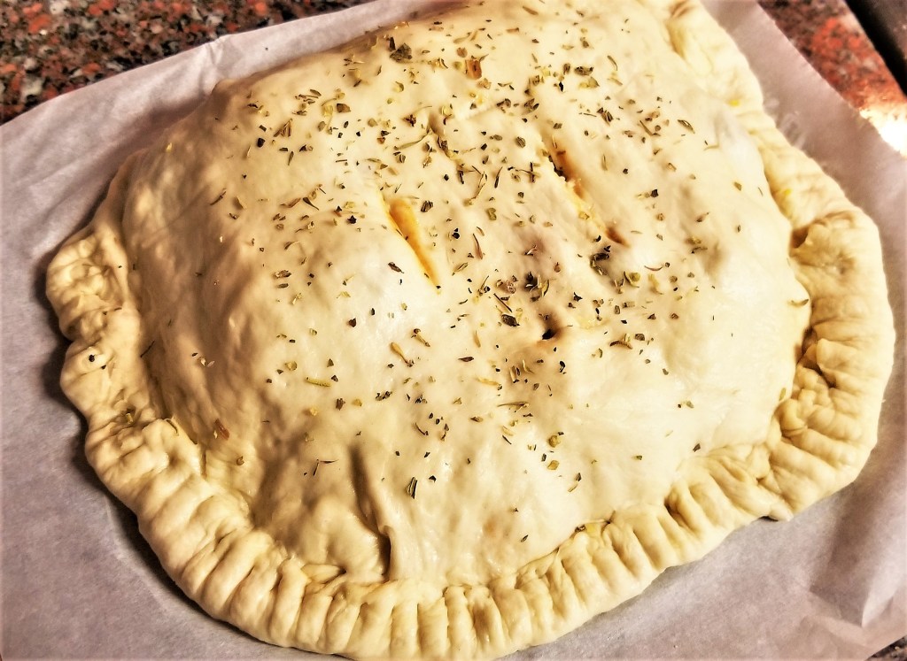 • Lightly coat in an egg wash and sprinkle italian seasoning on top. Cut 2 slits in the top to ventilate.