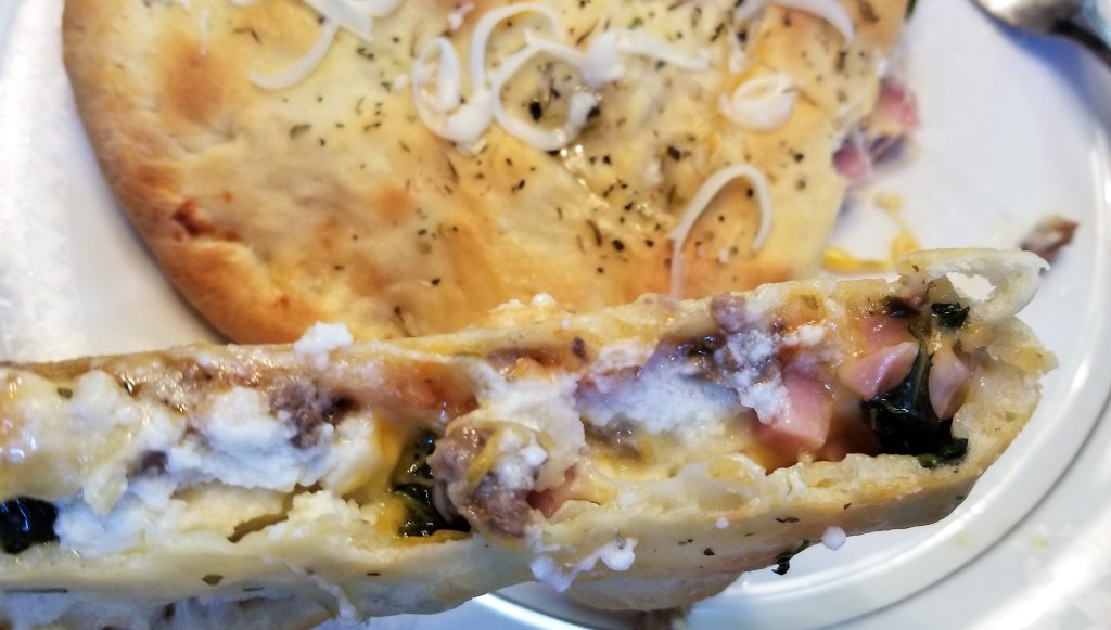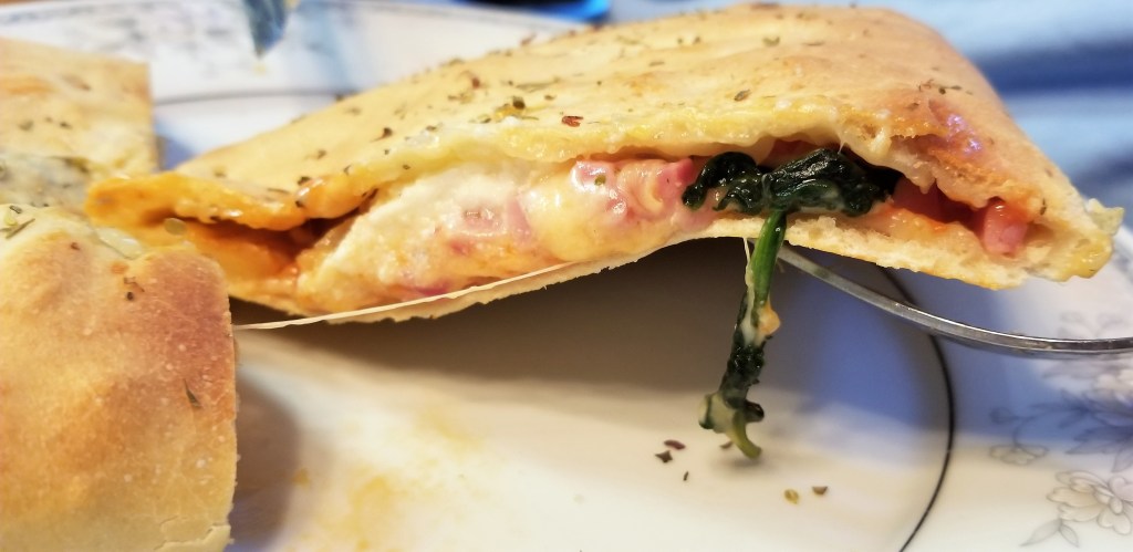 While the calzone most likely evolved from a folded pizza sold at a cart on the streets of Naples, we are assured of the ingenuity. Stuffing all the toppings inside, converting them to ingredients, retains all the favorite flavors of pizza with greater possibility. Everyone has their sworn by method for eating pizza (e.g. flat, folded, or forked), but the calzone was invented to fulfill a need – eating on the go. Once it is cool enough to dive in (patience has never been more trying) pick up your stuffed dough and test this method for keeping the stuffing inside. Although in theory, it is folded pizza, you are going to want to double check your seal before starting the calzone trials over grandma’s white sofa.