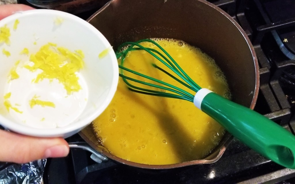 - In a pot crack 4 to 6 egg yolks, depending on the size of the lemon.